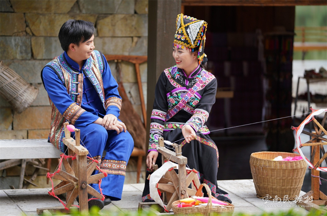 云南壯族主要聚居在文山州,人口114萬,民間的村寨大多依山傍水。壯族擅長種植水稻,有太陽崇拜和長老崇拜的風(fēng)俗,視銅鼓為重器,厚愛銀飾,善烹制五色花米飯,能歌善舞,熱情好客。進入景區(qū)壯族村,迎面有祭祀龍王的龍柱,兩邊是先民繪制的天王崖畫和為紀(jì)念傳說洪水泛濫時幫助先民度過劫難而建的石葫蘆亭。祭祀玉皇大帝的昊天閣和傳說能驅(qū)邪納福的碩大銅鼓聳立在廣場兩側(cè)。桿欄式和麻欄式民居、壯族青年社交休憩的“情廊”、村...