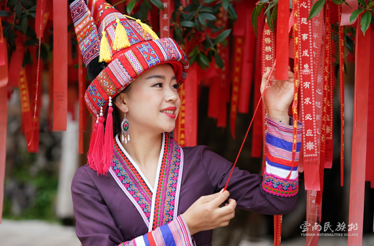 彝族在云南境內(nèi)約471萬人,是省內(nèi)人口最多、分布最廣的少數(shù)民族,主要聚居在金沙江、元江流域和哀牢山、無量山腹地。彝族是一個能歌善舞的民族,民間打歌、跳樂之風(fēng)盛行,大三弦、跌腳舞久負盛名。火把節(jié)是彝族最具特色的民族節(jié)日。彝族村占地50余畝,三虎浮雕墻與虎頭內(nèi)祖師形象表現(xiàn)了彝族虎鷹文化。太陽歷廣場圖騰柱上有太陽、虎、火和八卦圖形象,周圍環(huán)繞著10個朝向不同的月球造型,外圓周有12生肖石雕。依山而建的“...